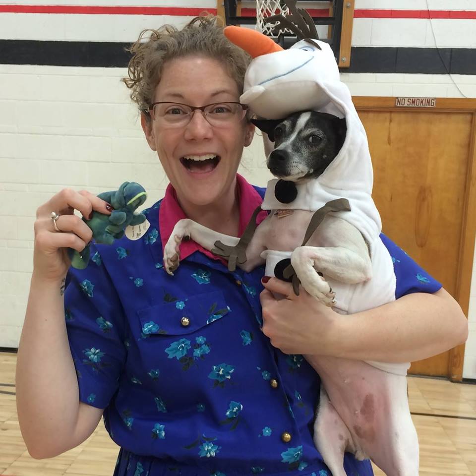 As any private school teacher knows, the duties of a teacher carry far beyond a normal 7:30-3 day with one season of extracurricular responsibilities.   My winter was filled with 10-13 hour days coaching cheerleading and directing school theater productions.  So, Picoult started coming to school with me.  She’s attended for six years without a diploma…some kids just take longer.  e-and-p1